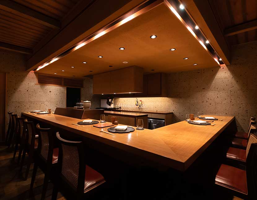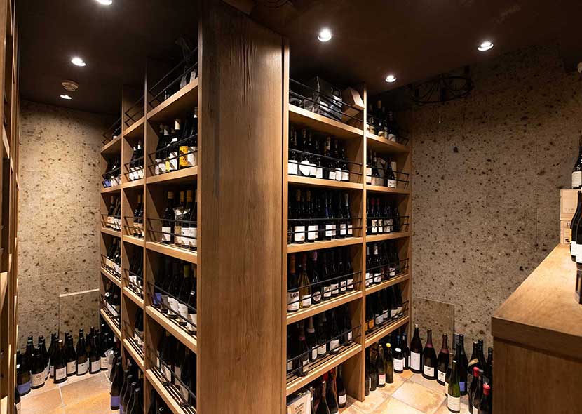 12席(カウンタ―のみ) 店内にはワインルームがあります。お店のソムリエ同伴のうえで、お客様がワインルームに入り、直接選んで頂くこともできます。 |